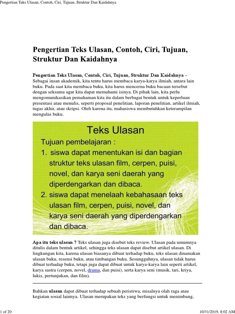 Pengertian Teks Ulasan Contoh Ciri Tujuan Struktur Dan Kaidahnya Pdf